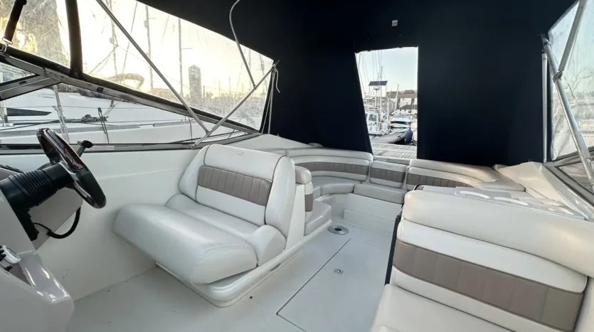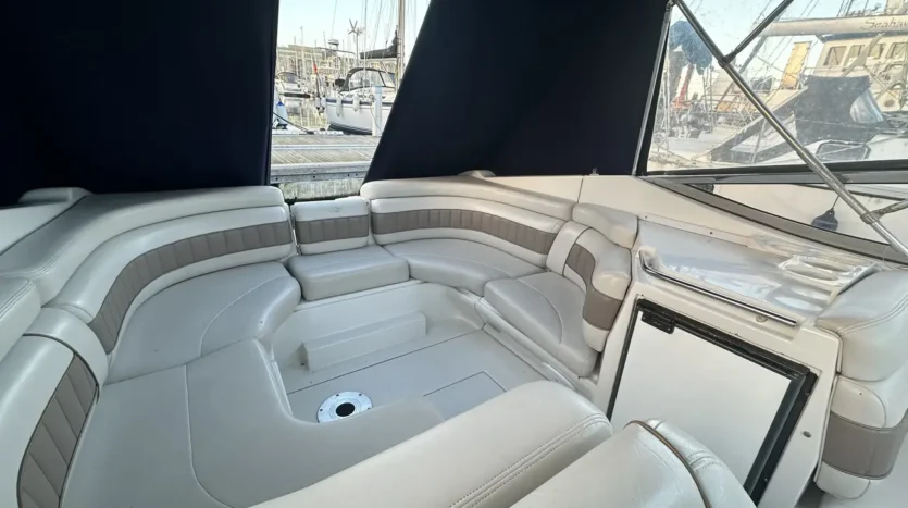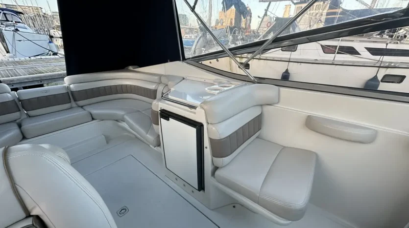 This sports cruiser is not just about aesthetics; it offers remarkable versatility and functionality for various water activities. One of its standout features is the spacious owner’s cabin located in the bow, which can seamlessly transform into a cozy saloon equipped with a functional table. This flexible design allows for easy transitions from relaxing overnight stays to vibrant social gatherings on the water.