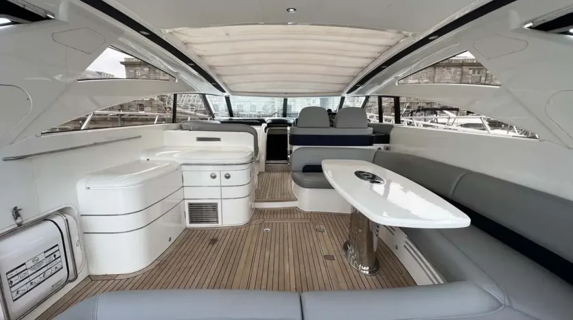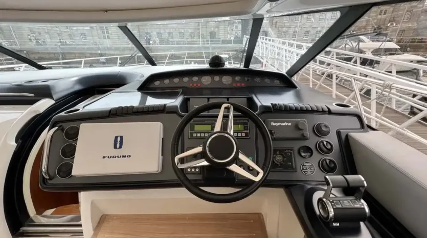 Blue Lagoon Marine are thrilled to bring to market this beautiful Princess V58, don’t miss the opportunity to purchase this rare boat to the UK. This particular example has had money spent in all of the right places, giving her a really modern feel and look. Spacious accommodation is provided by two double cabins and one twin-bed guest cabin. As for the saloon, it’s sensational. The parquet-style floor with inset circular carpet, and stainless steel inlaid furniture, make this is an interior which demands to be seen.