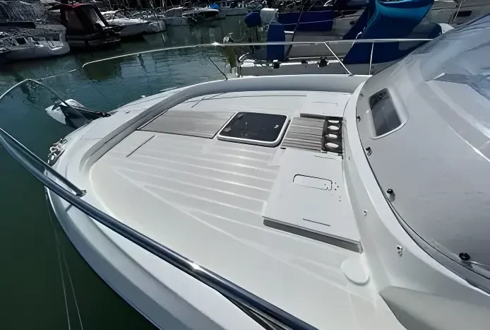 Designed with both functionality and aesthetics in mind, the Cap Camarat 9.0 WA features an open sports deck that allows for effortless movement and socialising while cruising. Below deck, you will find two spacious double beds, providing ample sleeping accommodations for family or friends, along with a dedicated heads (toilet) and shower for added convenience. The vessel’s sleek lines and wide, turned bow profile not only enhance its classic Italian-inspired appearance but also contribute to its exceptional performance and seakeeping abilities, ensuring a smooth and dry ride in various sea conditions.